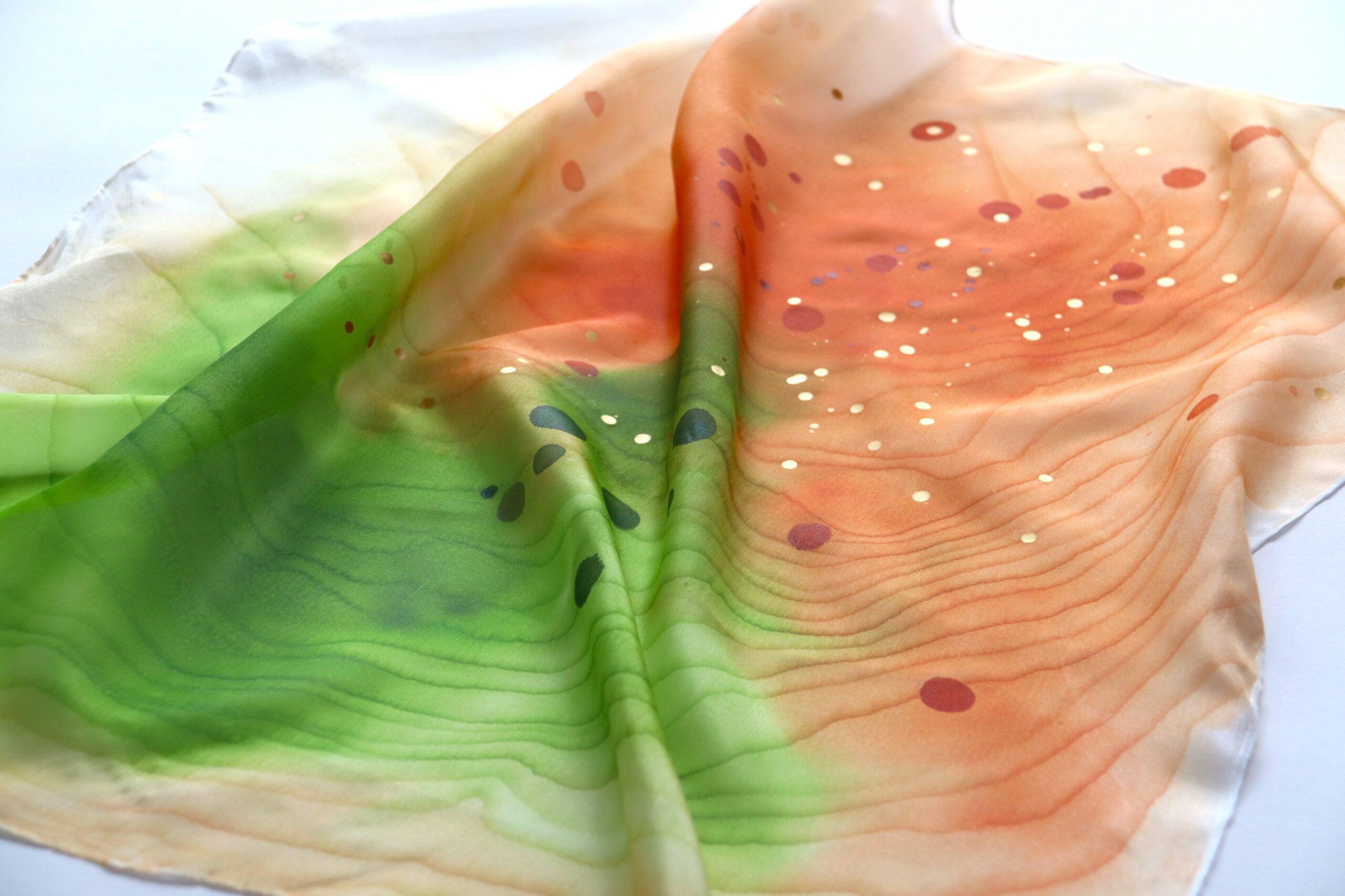 Ručne maľovaná šatka z prírodného hodvábu pongé 5.