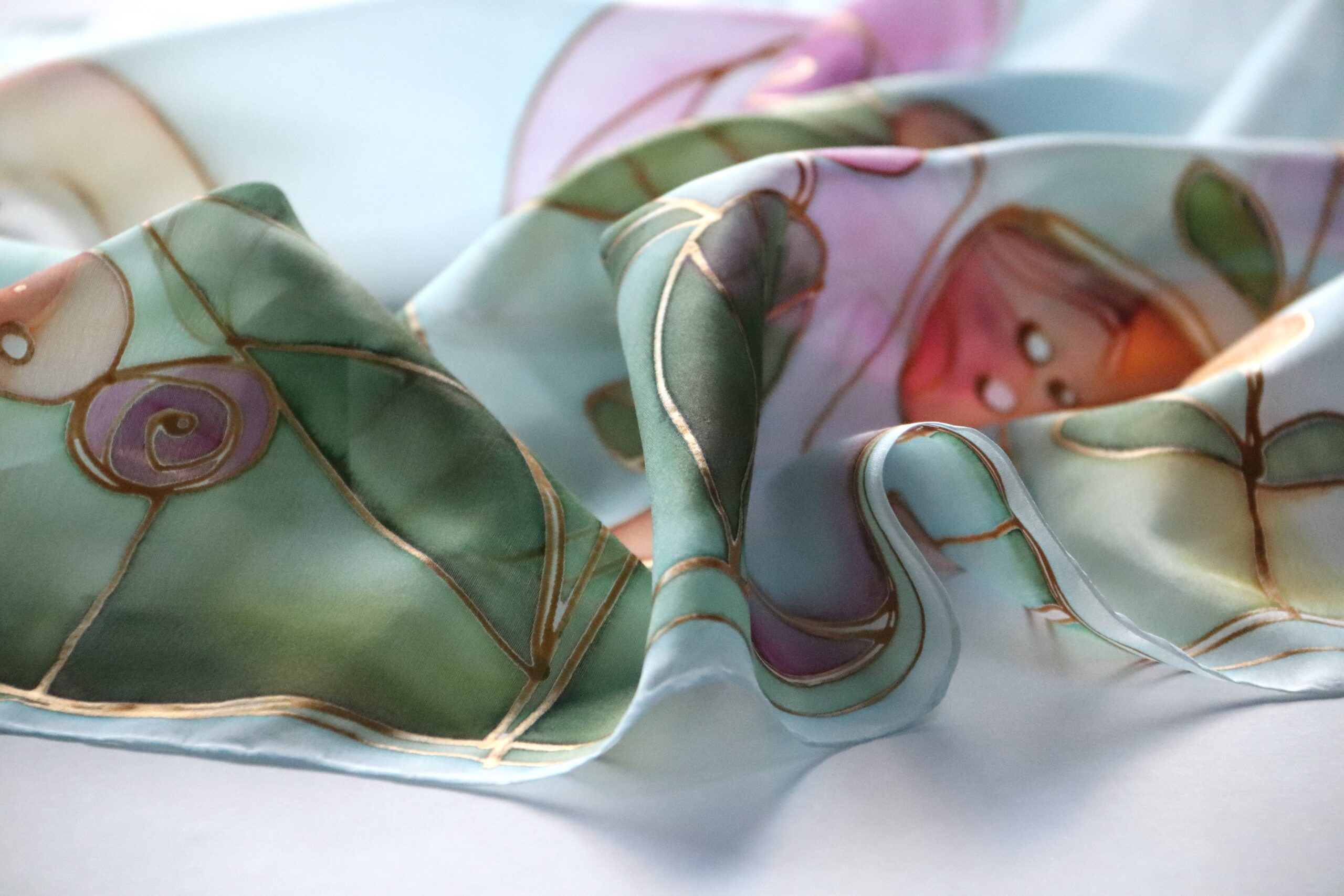 Farby sú stále, neotierajú sa, nevypierajú, určené na maľovanie na prírodný hodváb.