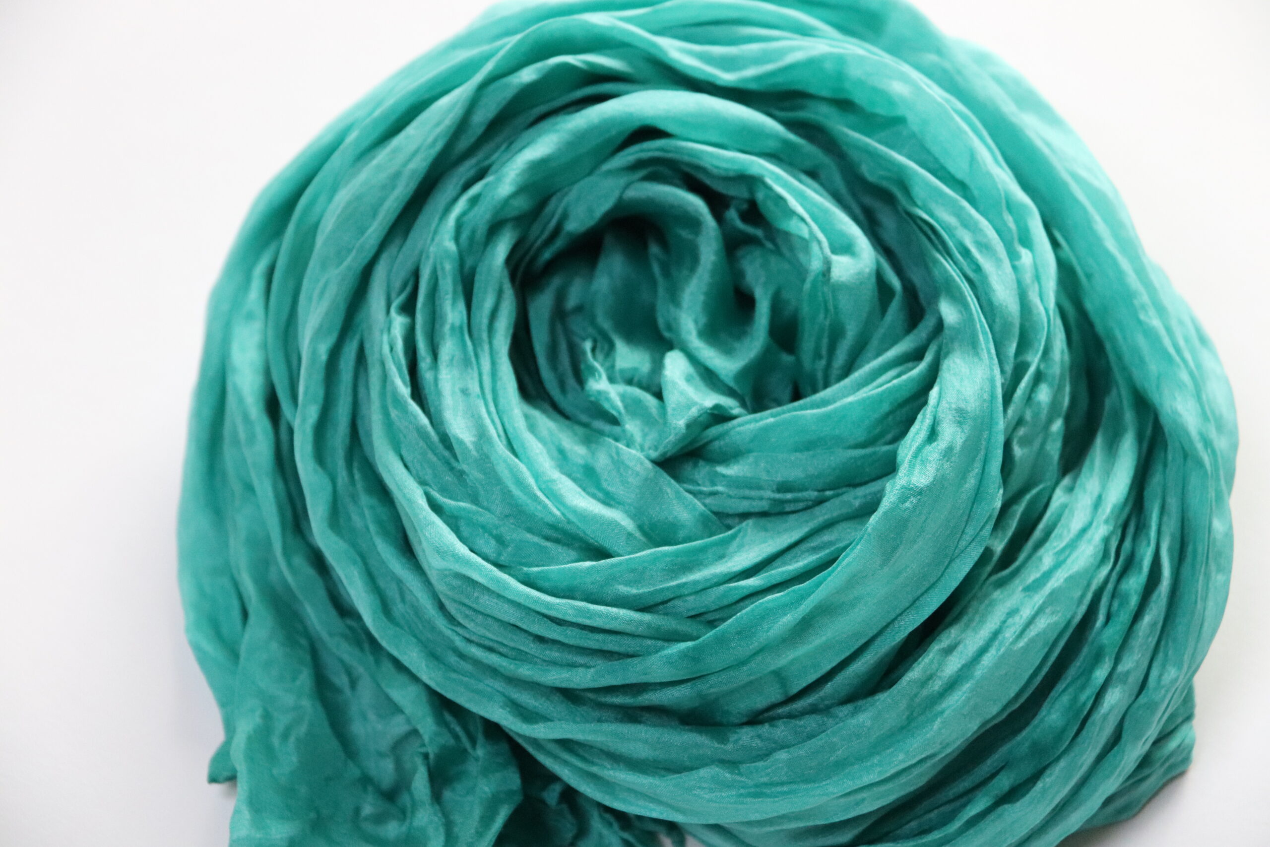 Šál po opratí necháme schnúť stočený do špirály, čím docielime skrčený efekt. Šál je veľmi jemný a príjemný na nosenie, neelektrizuje a neškriabe ako šály z umelého hodvábu.