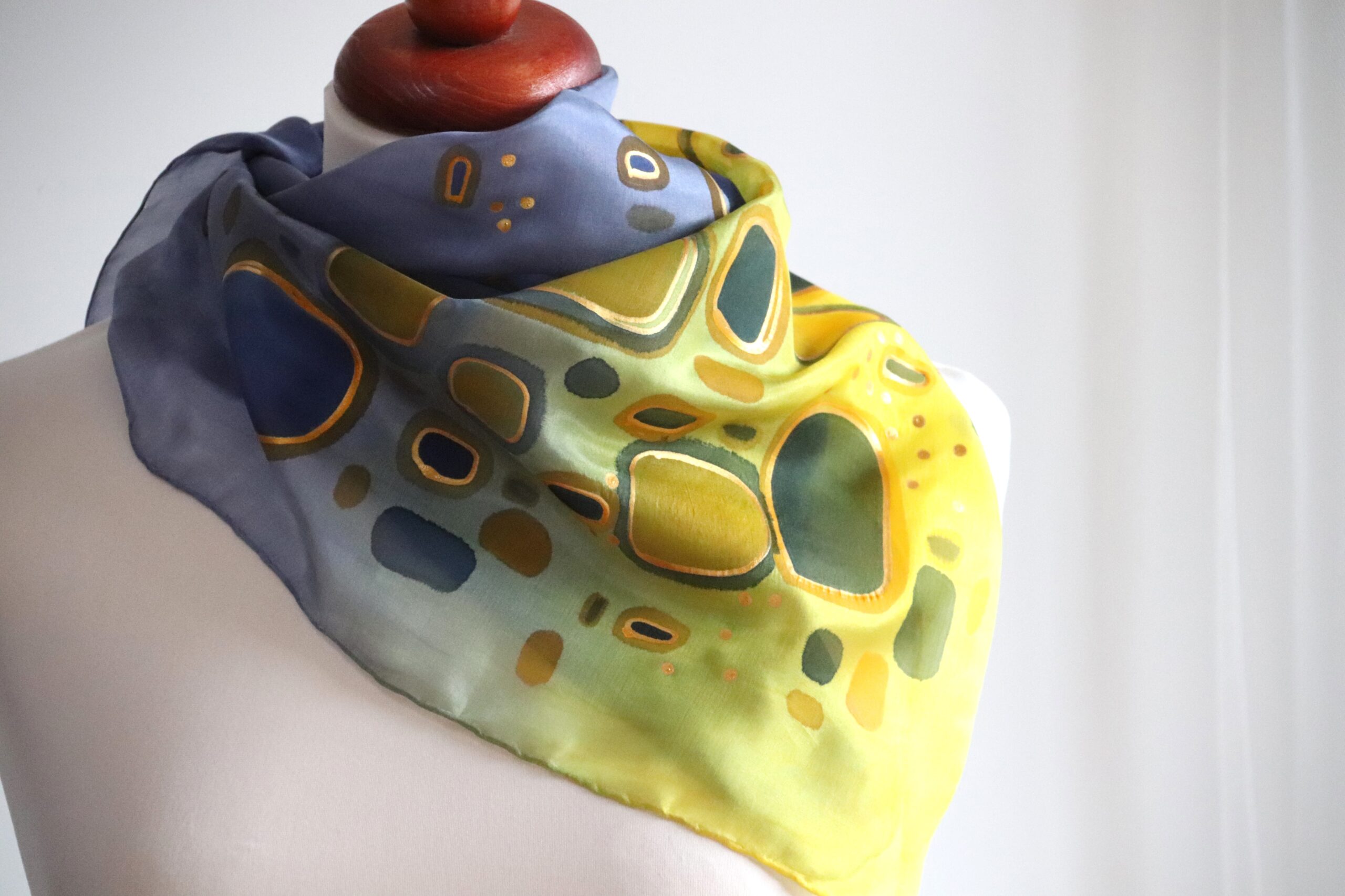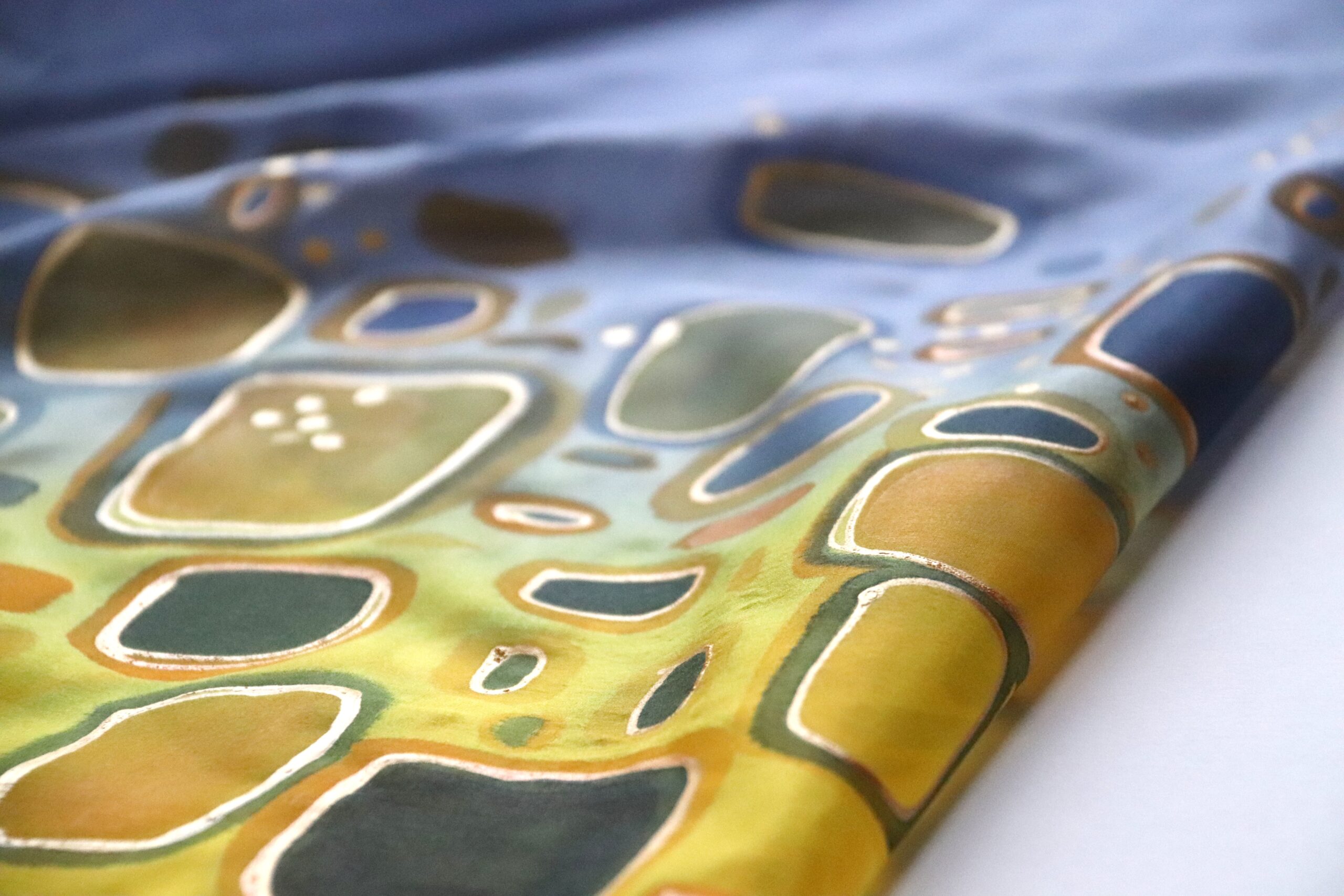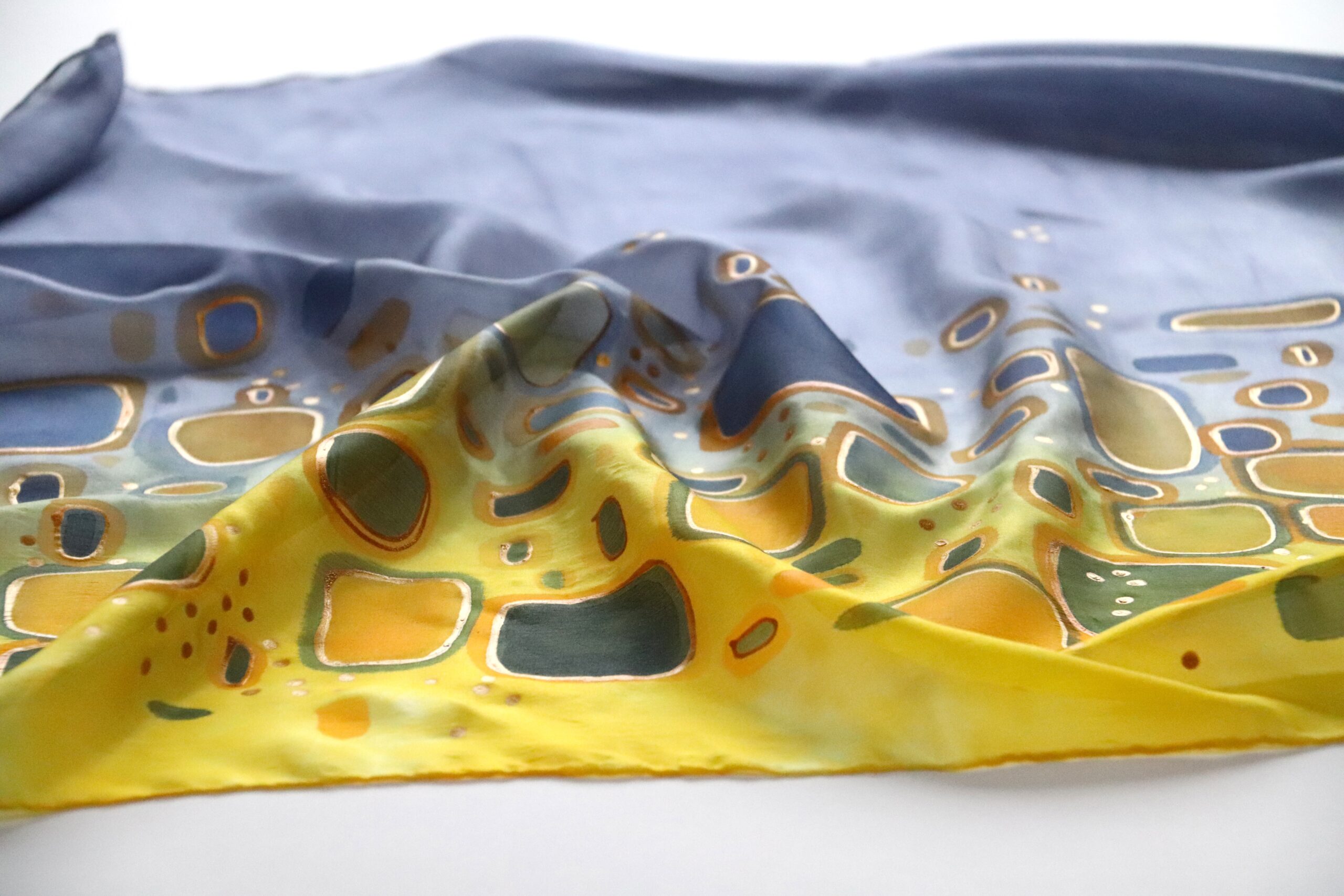 maľovaná hodvábna šatka MOZAIKA MODRO-ŽLTÁ